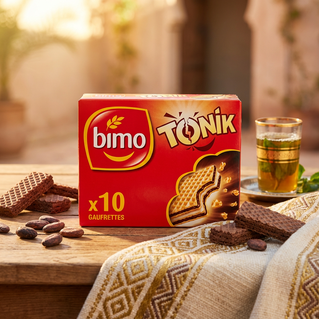 Enjoy the satisfying crunch and sweet chocolate indulgence of Bimo Tonik – a beloved treat from Morocco's finest snack makers!