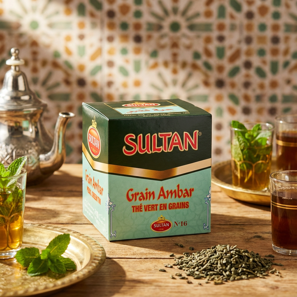 Experience the rich and authentic flavors of Morocco with Sultan Tea's Moroccan Grain Ambar 500g. Sourced directly from Morocco, this 100% green tea is rich in antioxidants and boasts a smooth and clean taste. Crafted by the experienced team at Sultan, this tea provides a plentiful supply in a convenient 500g package. Elevate your tea-drinking experience with Sultan Lux.